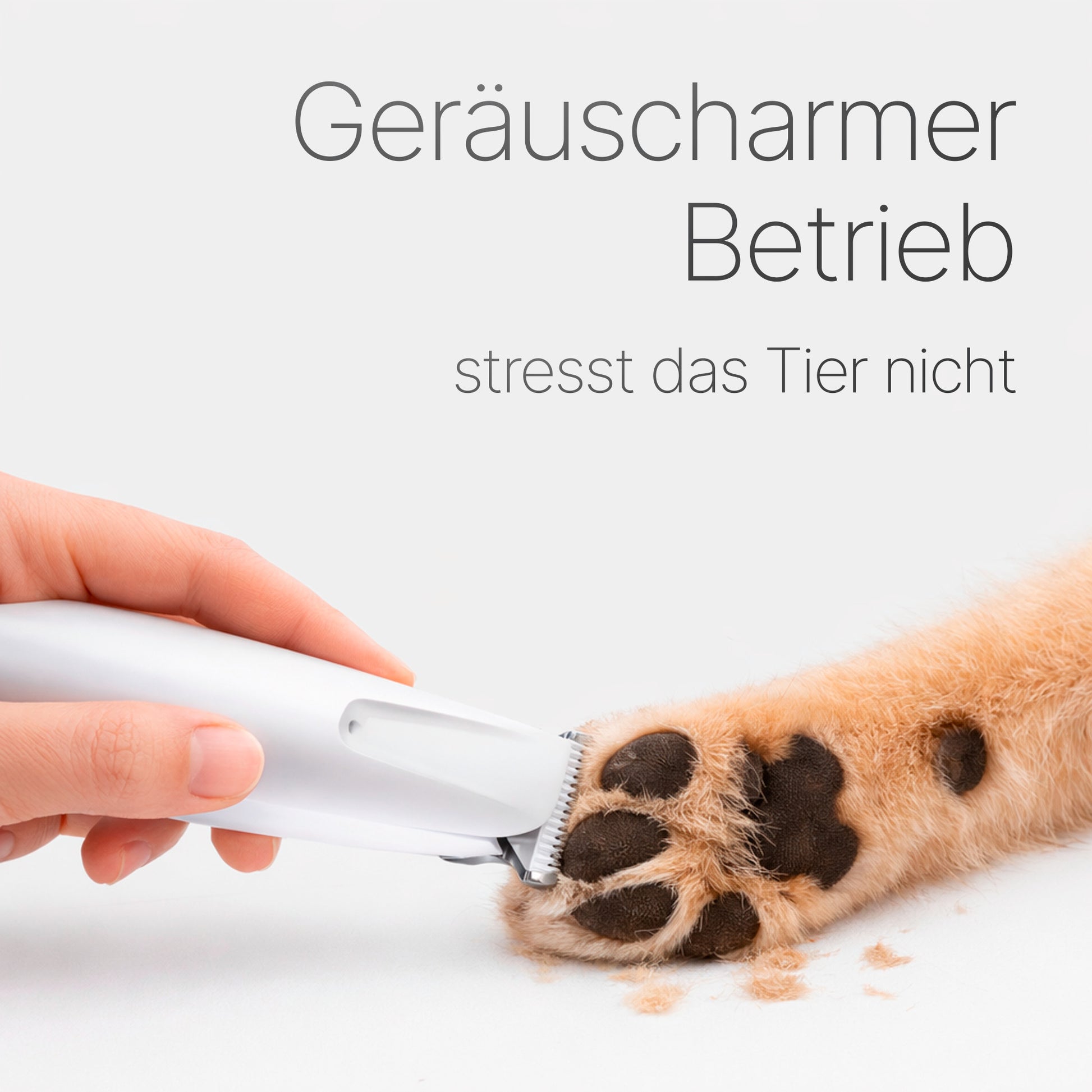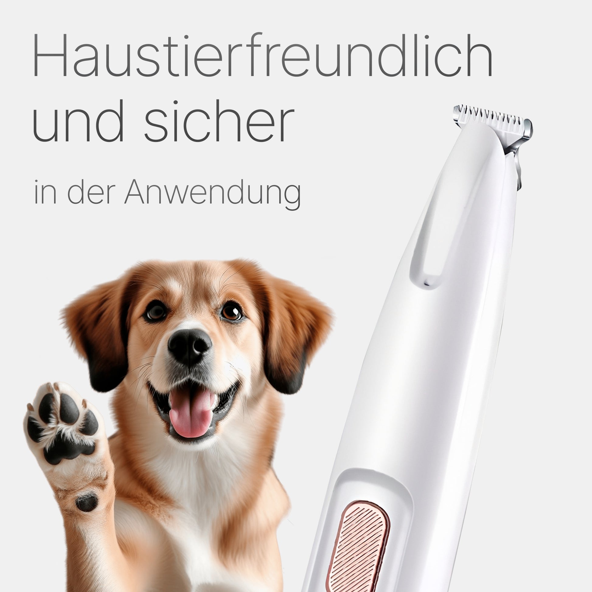 Absolut! Das Set verfügt über abgerundete, hautschonende Klingen, die speziell dafür entwickelt wurden, Krallen zu schneiden, ohne die empfindliche Haut zwischen den Zehen zu verletzen. Die sanfte Vibration und der leise Motor sorgen dafür, dass dein Hund entspannt bleibt.