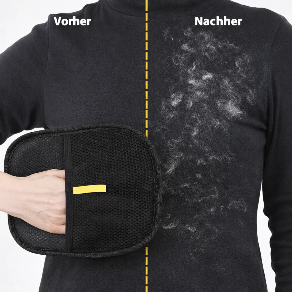 - Haare sammeln sich auf der speziellen Handschuhoberfläche